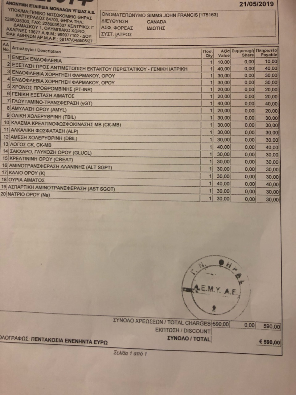 Ουρία αίματος που κοστίζει 3 ευρώ την χρεώνουν 40 ευρώ!!! Μαύρη αγορά σε καναδό τουρίστα.