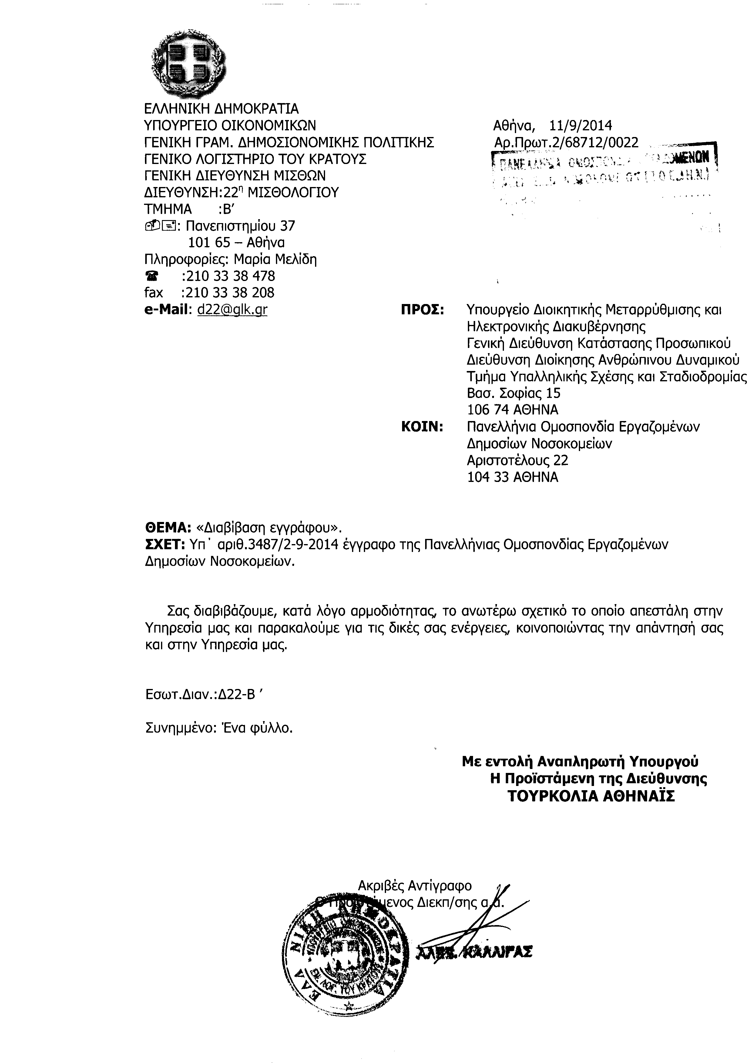 ΠΡΟΣ 22Η ΔΙΕΥΘΥΝΣΗ ΜΙΣΘΟΛΟΓΙΟΥ