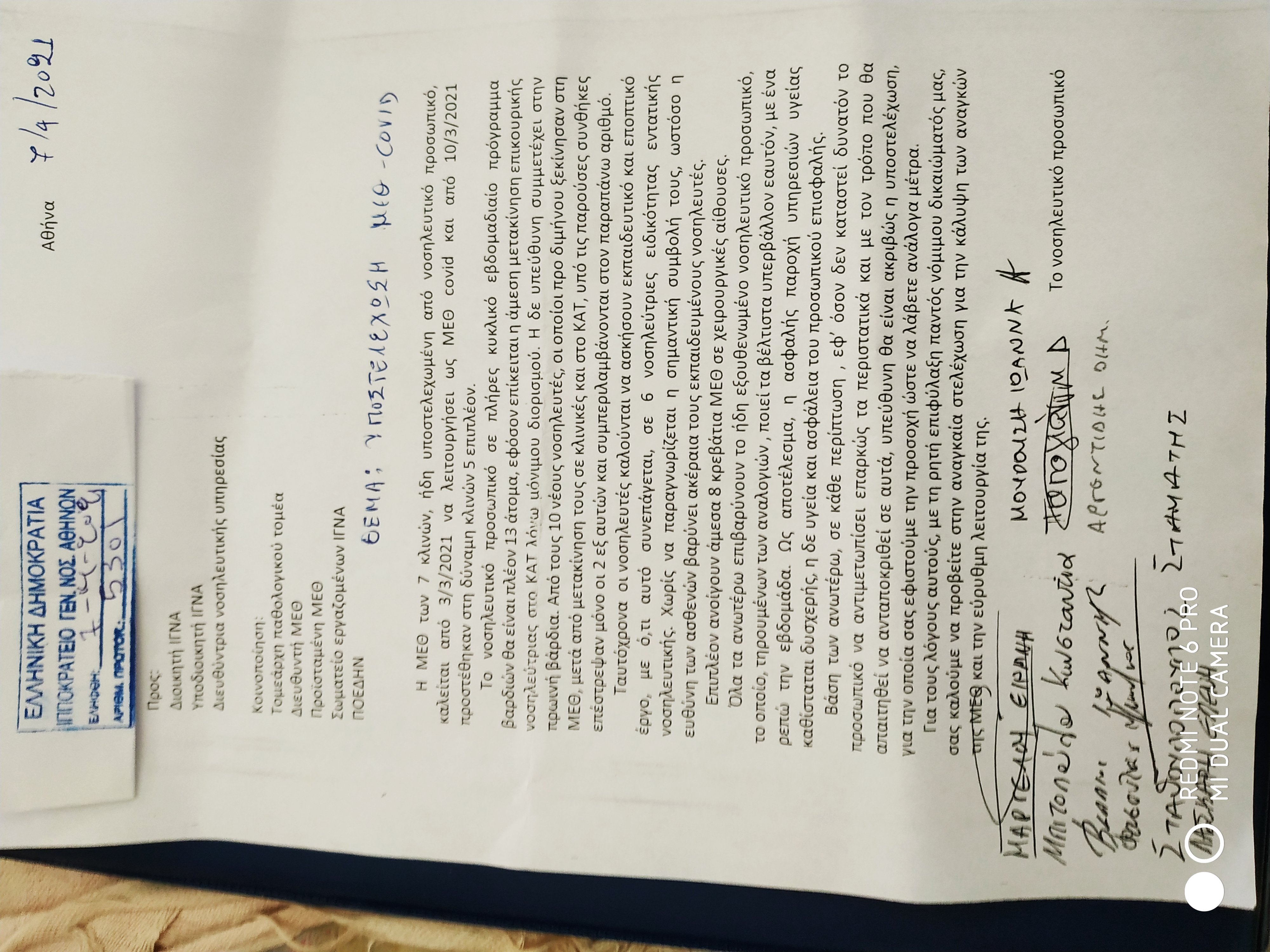 Κοινοποίηση στους Υπουργούς Υγείας έγγραφο του Συλλόγου Προσωπικού και των εργαζομένων του Ιπποκρατείου Αθηνών με θέμα την ενίσχυση και στελέχωση της ΜΕΘ με το απαραίτητο προσωπικό.