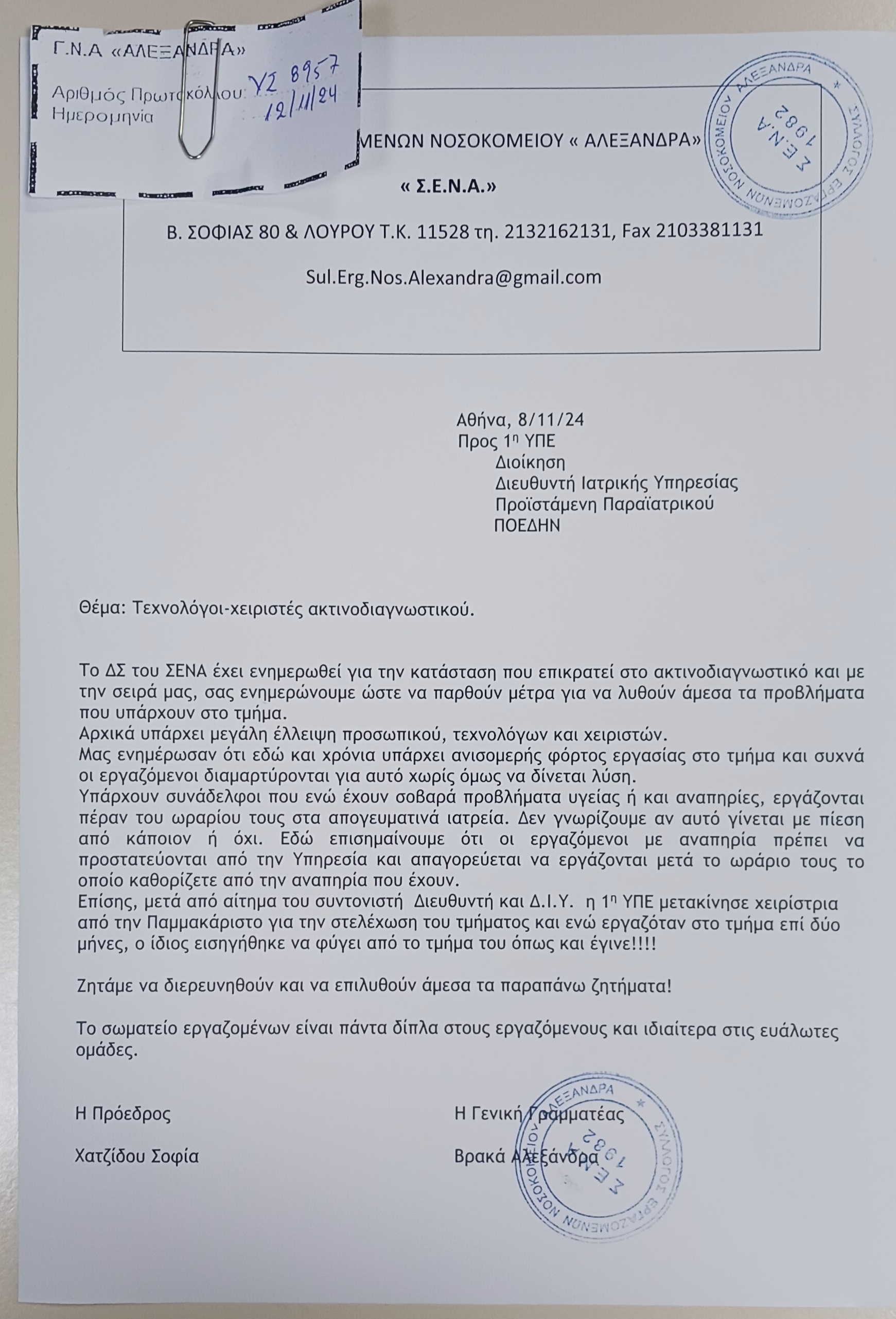 ΚΟΙΝ.: ΣΩΜΑΤΕΙΟ ΕΡΓΑΖΟΜΕΝΩΝ ΝΟΣΟΚΟΜΕΙΟΥ «ΑΛΕΞΑΝΔΡΑ»