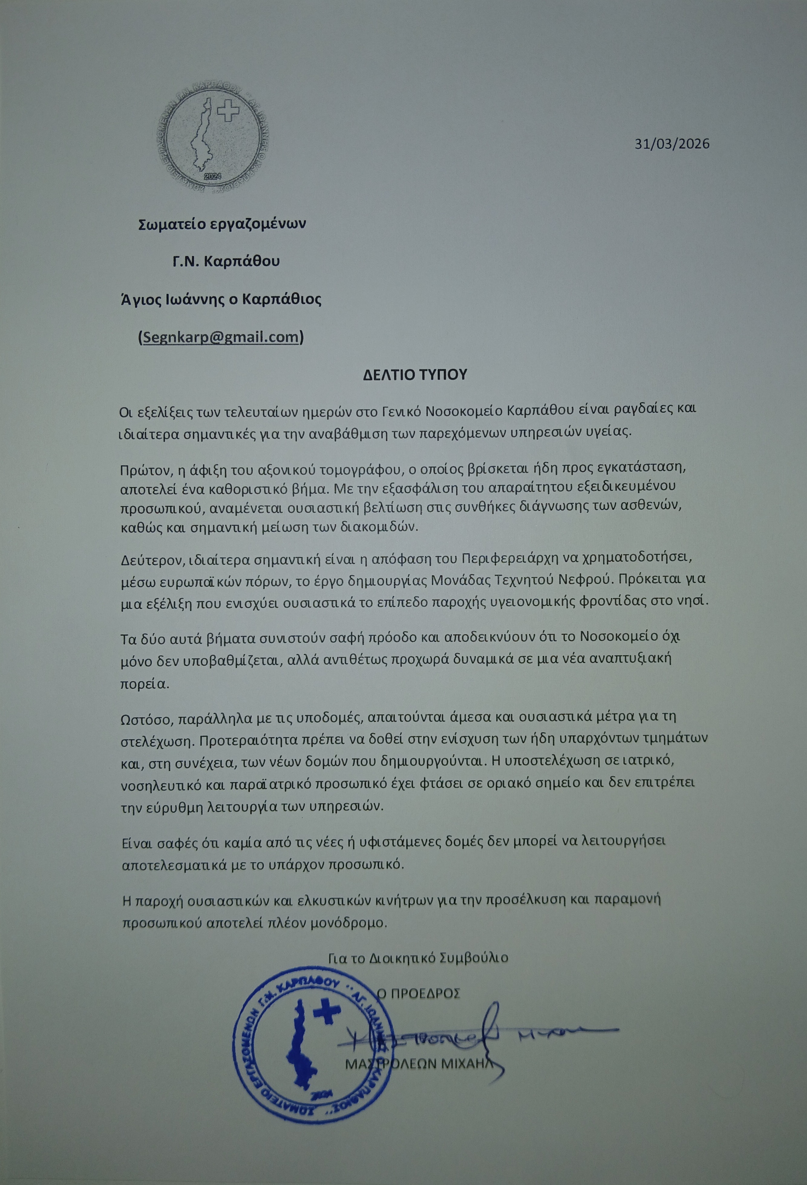 ΚΟΙΝ.: ΣΩΜΑΤΕΙΟ ΕΡΓΑΖΟΜΕΝΩΝ ΓΝ ΚΑΡΠΑΘΟΥ